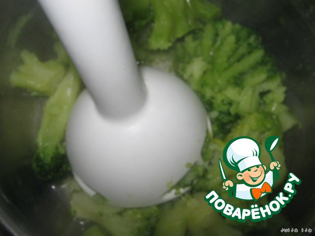 С брокколи жидкость слить всю, и пюрировать блендером.