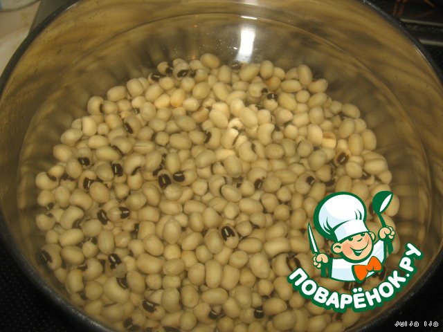 Отварить фасоль, в подсоленной воде, до состояния разваривания. То есть она должна быть очень мягкой. У меня сорт, который очень быстро варится, и не требует замачивания. За два часа разварилась очень хорошо.