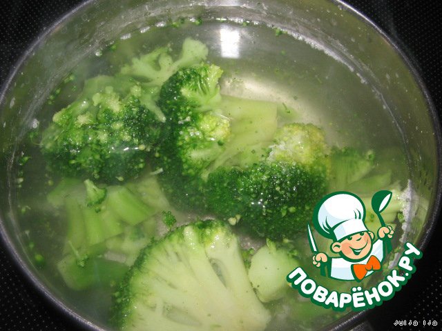 Брокколи, отварить в кипящей, подсоленной воде до мягкости.