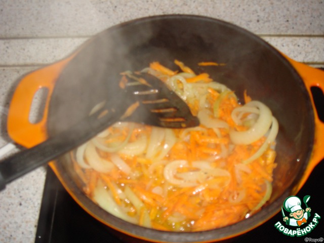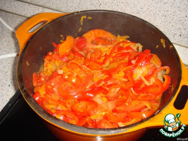 Тушить всё 30 минут. Потом добавить полстакана воды и рис. Тушить ещё 20 минут.