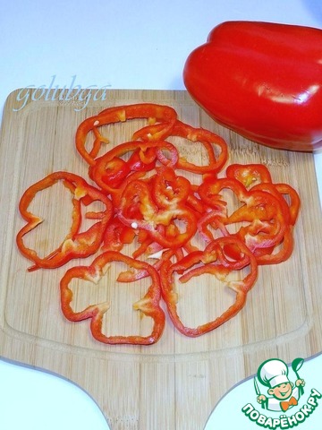 Очищенный от семян и плодоножки болгарский перец нарезать кольцами.