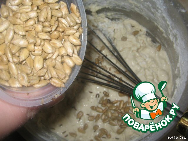 И семечки. 1 столовую ложку. У меня были уже обжаренные. Если использовать сырые, то их лучше немного поджарить на сухой сковороде.