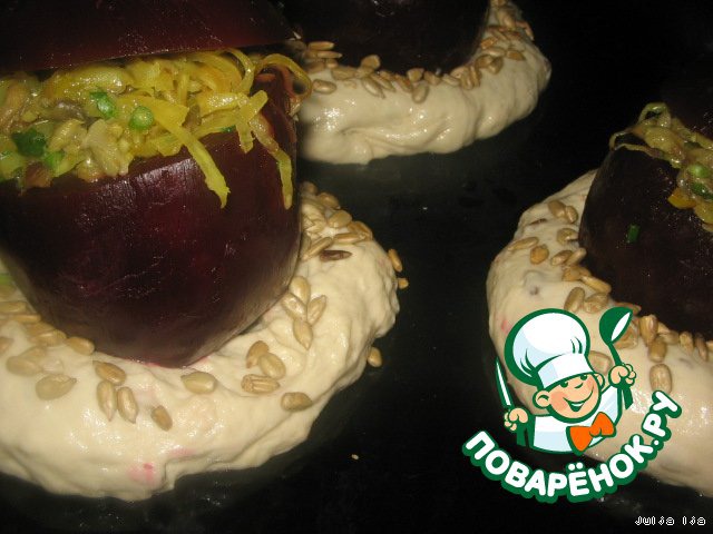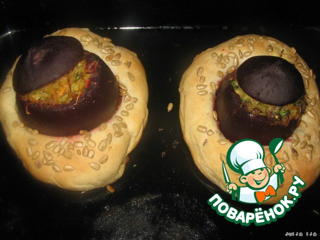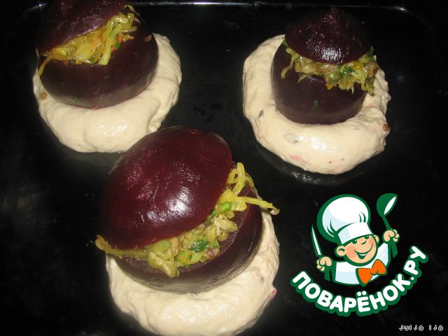 | Я очень люблю свеклу, появилась идея сделать из неe вот такие горшочки, с грибами и квашеной капустой, а чтобы было интереснее, я решила посадить их на хлебушек. Блюдо из разряда "два в одном", очень удобно и вкусно. На конкурс "Постимся с "Moulinex"". |