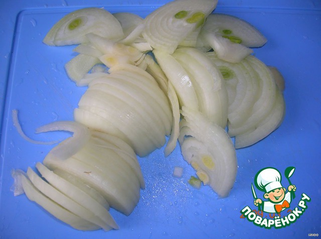 На сковороде раскаляем растительное масло, пережариваем лук 1 минуту.