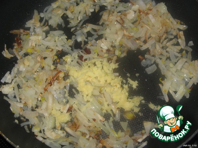 Натереть имбирь на мелкой тёрке. Пару сантиметров от корня, не больше.