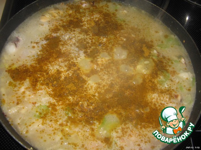 Солим по вкусу. Добавляем карри.