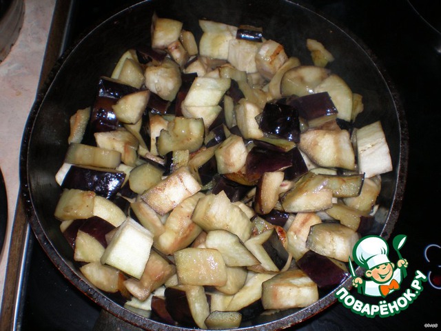 Нарезать баклажаны такими же брусочками, так же их обжарить