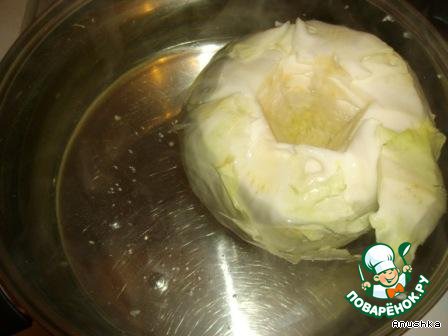 Отвариваем целиком капусту, вырезав кочерыжку