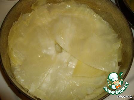 Капусту разбираем на листья, вырезаем жесткую прожилку.