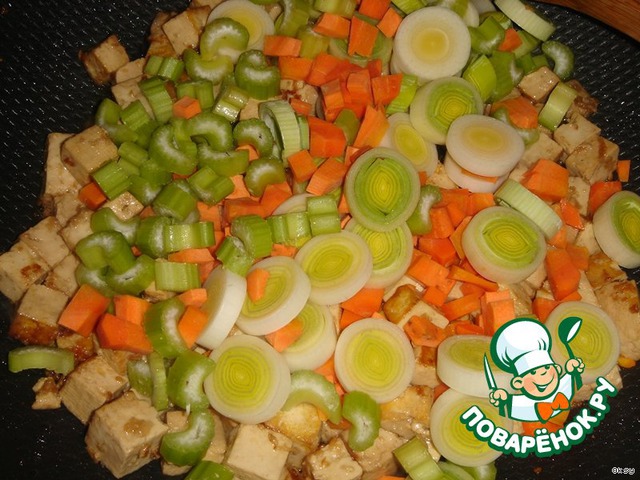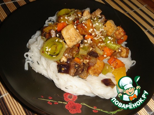 | Правильнее было бы назвать "Тофу с овощами по-китайски". Ну очень вкусно!!! Остренько, пикантно.... |