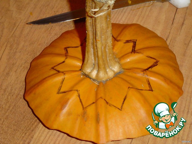 1. Сначала разделите тыкву на две части - основную и крышку.