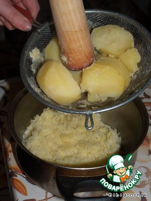 Картофель очистить и сварить в подсоленной воде. Воду слить.