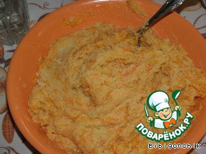 Смешать с картофельной массой. Добавить 1 яйцо. Все хорошо перемешать.