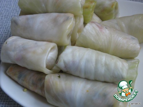 Теперь этой начинкой начиняем капустные листья.