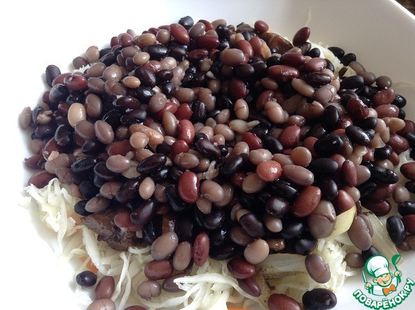 И, что не маловажно, это еще и очень полезно - ну не мне вам расказывать о полезности бобовых и квашеной капусты. Весной за такой салатик ваш организм скажет вам "Спасибо".