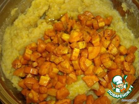 Соединяем гороховое пюре с обжаренной морковкой, перемешиваем.