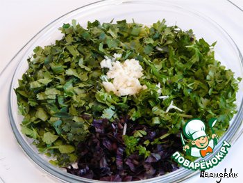 Грецкие орехи измельчить в блендере, или можно пропустить через мясорубку. Зелень измельчить. Чеснок выдавить прессом. И уже чувствуете, какой пошёл аромат?!