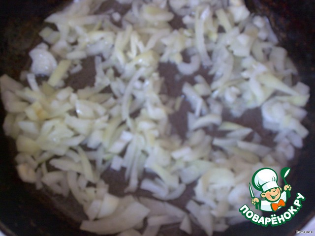 Лук мелко нарезать и обжарить на подсолнечном масле.
