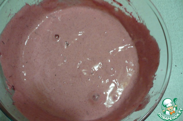 Взбить мусс миксером на большой скорости 10 мин. Масса должна увеличится и побелеть. Добавляем оставшуюся порезанную вишню и перемешиваем.