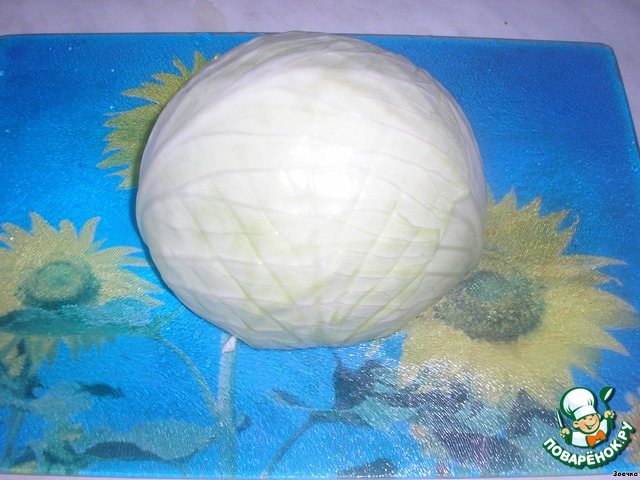 и делим на листья,которые слегка отбиваем и отвариваем 5 минут в подсолёной воде.