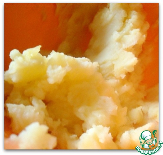 Пока варится чечевица, отвариваем картофель и готовим пюре - толчем, добавляем по вкусу соль. Вливаем в пюре примерно 1/3 стакана воды, постепенно высыпаем муку, получаем эластичное тесто.