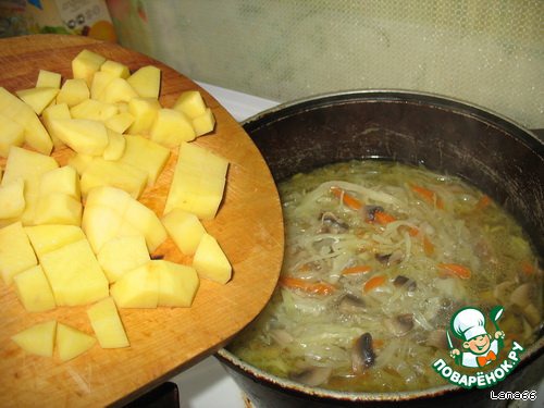 За 15 минут до готовности добавить 2 кубика грибного бульона и сок выжатого лимона.