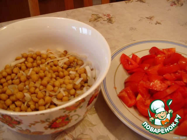 Нут замачиваем на ночь. Утром отвариваем в другой воде до готовности часа 1,5 - 2. Сливаем воду и охлаждаем.