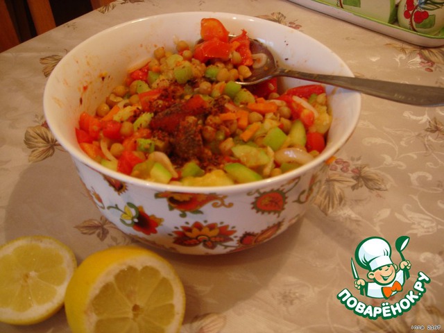 | Этот салат похож больше по вкусу на сытный холодный гарнир в жару. По желанию и вкусу можно добавить немного чеснока и кинзы. |