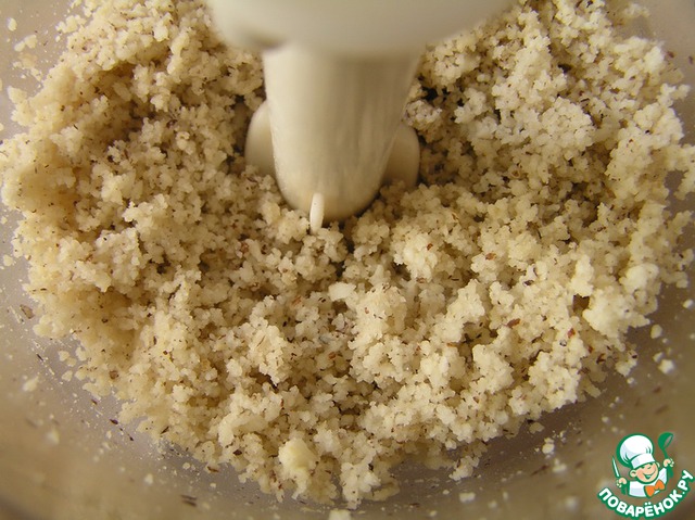 Орехи поместить в чашу блендера и измельчить.