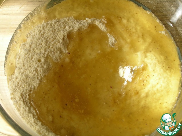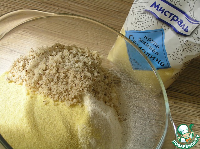 Смешать муку, манку (у меня семолина), соль, измельченные орехи.