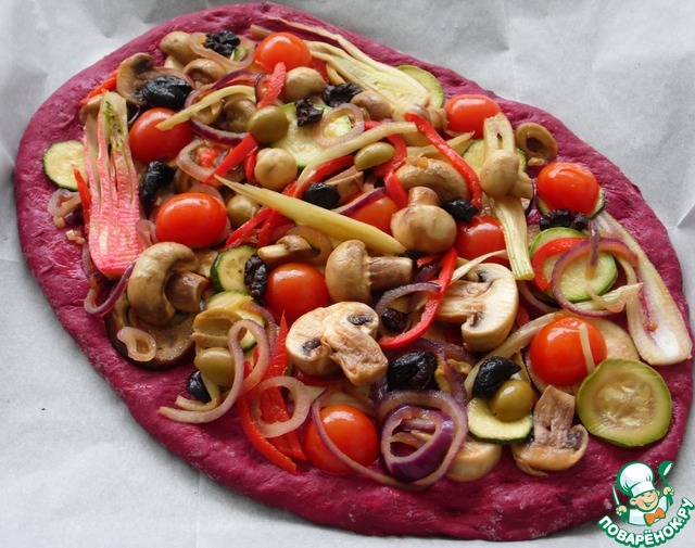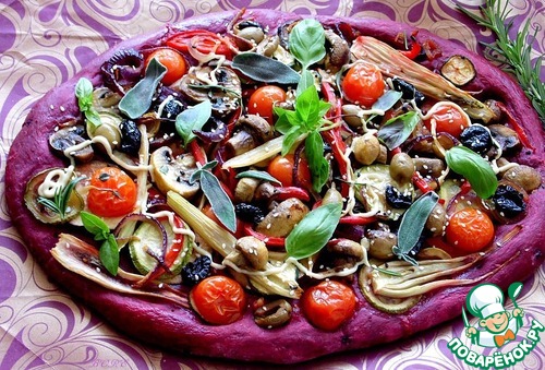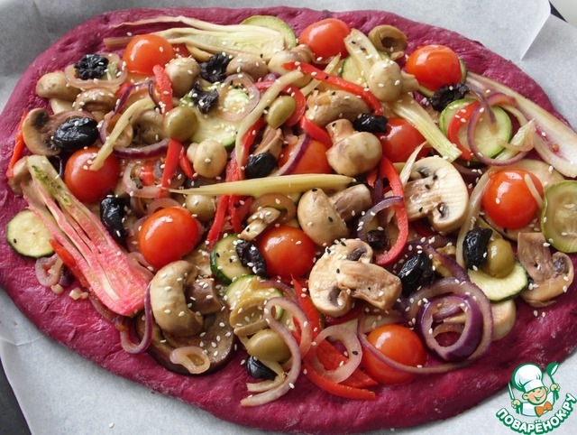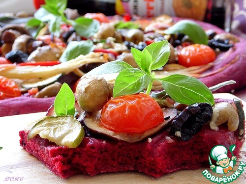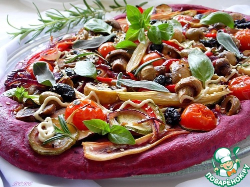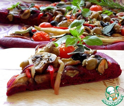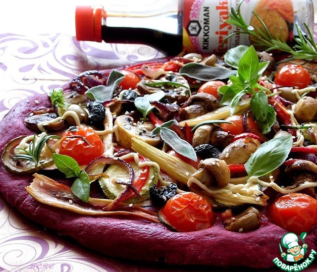 | Пицца из свекольного теста с овощами и грибами. Вот он настоящий праздник постного меню, этот рецепт идеально подходит для всей семьи, включая детей, он получается яркий, вкусный и конечно очень полезный. Сколько полезных продуктов встретились в одном рецепте?, огромное количество витаминов так необходимых нам в весенний период, после долгой зимы, и конечно в пост, мы должны поддерживать водный и витаминный баланс. Пицца сделана на основе, которая включает в себя свеклу, тесто получилось воздушное и очень, очень вкусное, одним и очень важным фактором в технологии является то что свёклу нужно запекать, так она сохраняет все витамины и придаёт тесту такой замечательный цвет, если её отварить вы не получите такого яркого, красивого цвета теста. Овощи и грибы в сочетании с соусом "Териаки", приобретают новые более сильные вкусы качества, вкус становится более богатым и ароматным и насыщенным. Вы можете использовать любые овощи т. к это не принципиально, уверенна что это буде вкусно. Рецепт простой, не требует особенной подготовки, советую всем приготовить эту вкусную и полезную пиццу. |