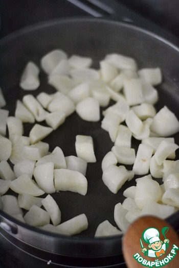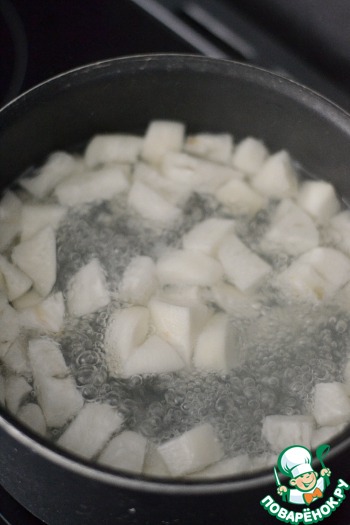 Репу очистить от кожицы и нарезать некрупными кубиками.
