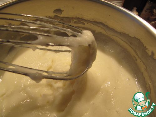 Пока тесто отдыхает - готовим мусс-крем. Сироп (я брала из консервированных персиков) разбавить по вкусу водой, закипятить и всыпать тонкой струйкой при постоянном помешивании манку. Следим, чтобы не было комков! Варить 15-20 минут, пробуем на вкус, добавляем ванильный сахар и чего не хватает! Затем ставим кастрюльку в ледяную воду и охлаждаем, постоянно взбивая венчиком. Мусс начнет густеть прямо на глазах.