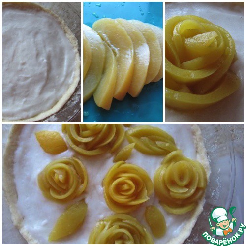 | Сочные и ароматные персиковые розы в сочетании с вкуснейшим муссом из манки, запеченными на нежнейшем тарте опять же из манки! |