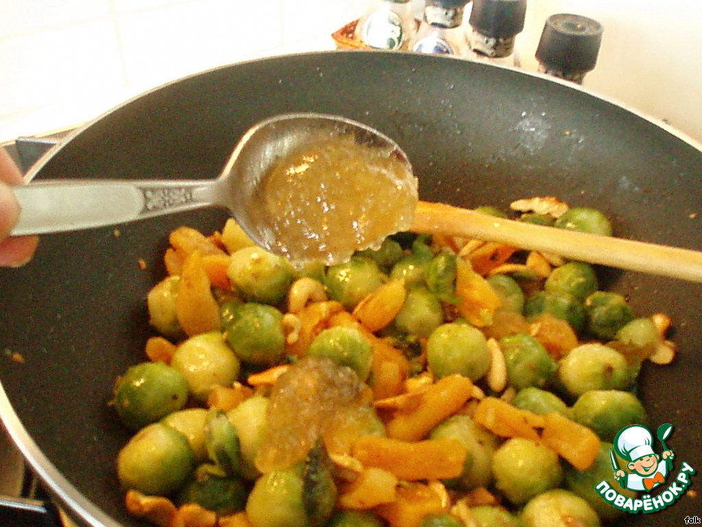 | Брюссельская капуста очень полезна, но небольшая горчинка многих отпугивает от сего продукта. В моeм варианте сладкий джем нейтрализует эту горечь и вкус меняется кардинально. Попробуйте, вас за уши потом не оттащишь! |