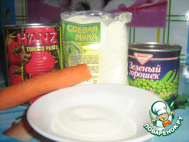 Соединяем с горошком и соевой мукой.