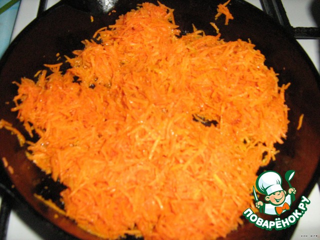 Готовим соус: морковочку пассируем, добавляем томат, специи, чуть водички и тушим до готовности.