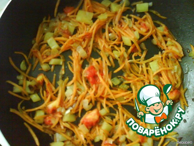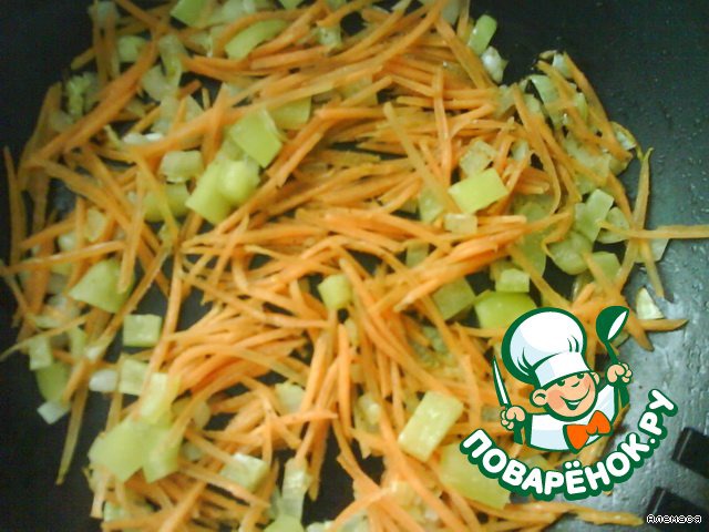 Добавляем морковь, дальше жарим уже на медленном огне.
