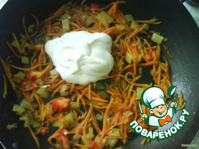 Сметану, соль. Перемешиваем. Прогреваем. И все!