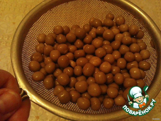 Пока обжаривается морковка сливаем и промываем холодной водой горошек