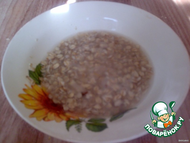 Геркулес залить 1/2 ст. горячей воды и оставить настаиваться
