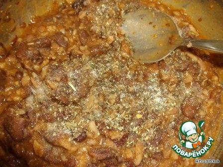 В размятую фасоль добавить на глаз овощного микса и все наши специи. Перемешать.