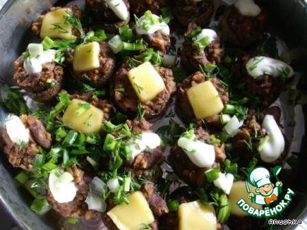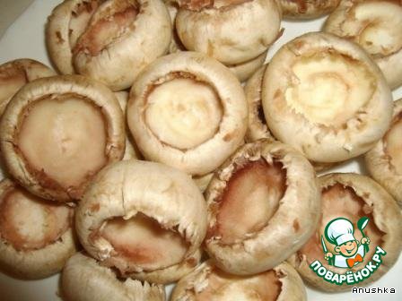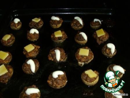 Поставить в разогретую до 200гр духовку на 15-20 минут. Вынуть, выложить на часть шляпок кусочек сыра (НЕ ПОСТНЫЙ ВАРИАНТ), а на другую часть – постный майонезный соус (ПОСТНЫЙ ВАРИАНТ). Вернуть в духовку, убавить температуру до 150 гр и подержать еще минуток 5-10.