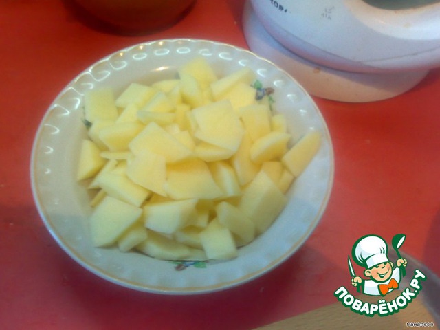 Чистим картошку, режем мелко, как нравится, и добавляем туда же.