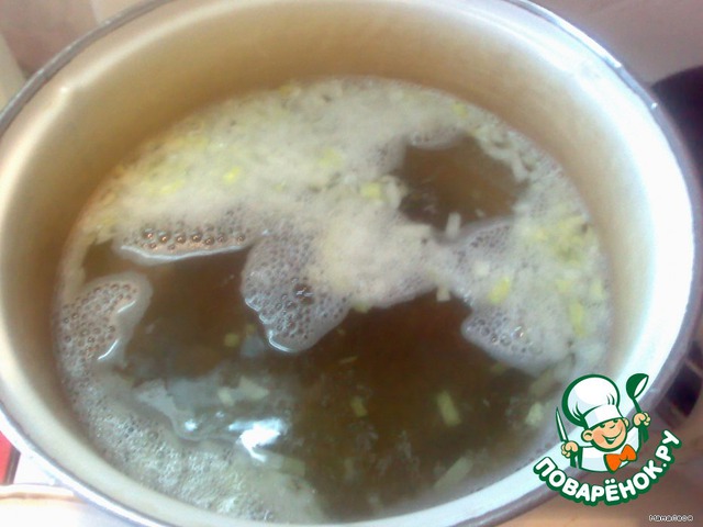 Доводим до кипения полкастрюли воды, режем одну луковицу кубиками и кидаем в воду, добавляем 2-3 ложки растительного масла