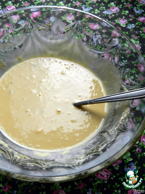 В мучную смесь, постоянно помешивая, влить тонкой струйкой воду, хорошо перемешать.