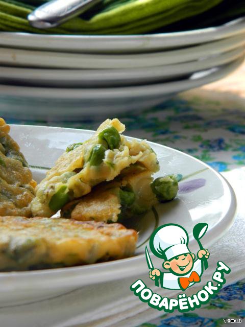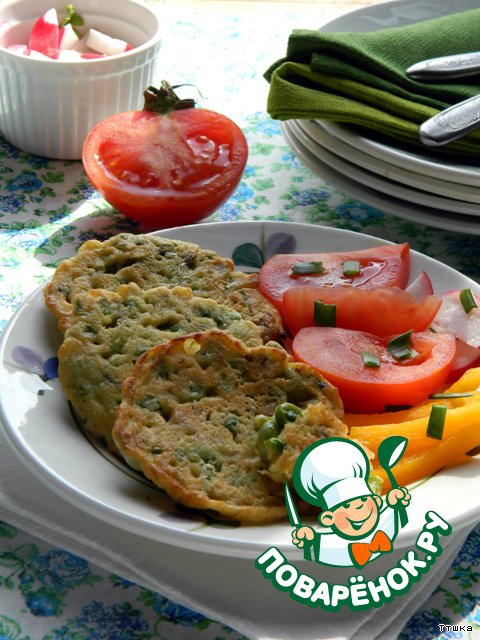 Оладьи из нутовой муки с зеленым горошком (постные )