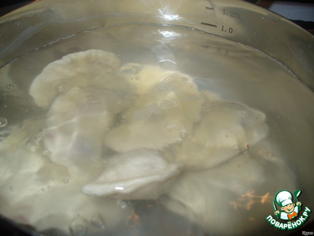 Отвариваем в подсоленной кипящей воде минут 12-15 после того, как всплывут.