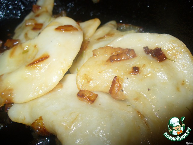 А муж мой любит готовые вареники с картошкой положить в сковороду с обжаренным репчатым луком (нарезанным кубиками) и немного потушить, чтобы вареники пропитались. Но это на любителя - для меня, например, слишком жирно. ))) В любом случае, приятного аппетита!
