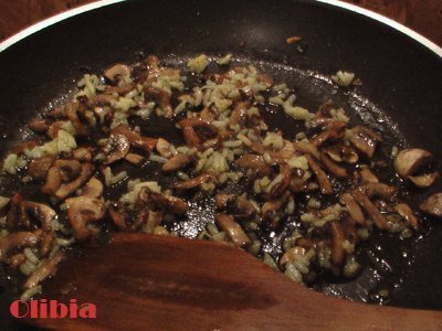добавляем резаные грибы, солим, перчим, тушим минут 5